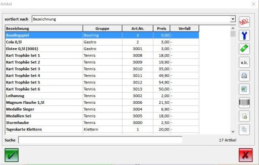 Im folgenden Dialogfenster findest du eine Liste aller bereits angelegten Artikel.